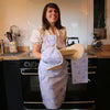 Aprons come with natural colour ties
