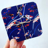 Melamine coated 9cm coasters in sets of 4 matching designs. The perfect gift or little treat!